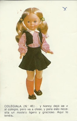 El conjunto Nancy Colegiala aparece por primera vez en el catálogo de 1973 y sale en todos los de 1974, y Lesly en su primer catálogo de 1976.